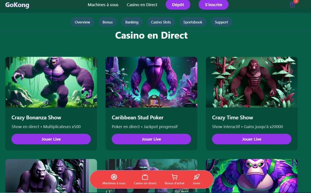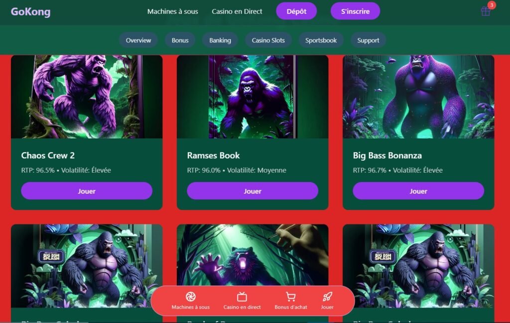 Opter pour une plateforme de jeu en ligne nécessite de se pencher sur plusieurs aspects cruciaux, tels que la sécurité, la diversité des jeux de casino, les bonus proposés ou encore les moyens de paiement disponibles. Go Kong Casino répond à ces critères avec efficacité, offrant un environnement où les débutants comme les passionnés trouvent leur compte.
