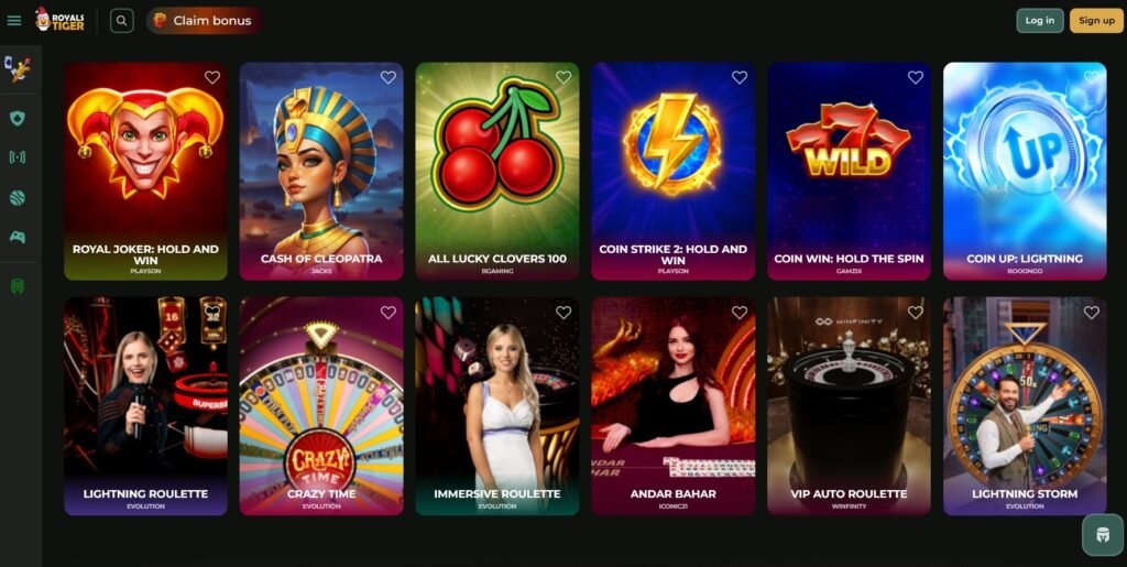Royalstiger mise sur une interface claire et structurée. Les menus sont simplifiés, l’accès aux jeux est rapide et le support client reste visible à tout moment. Cette organisation convient aussi bien aux débutants qu’aux joueurs expérimentés.